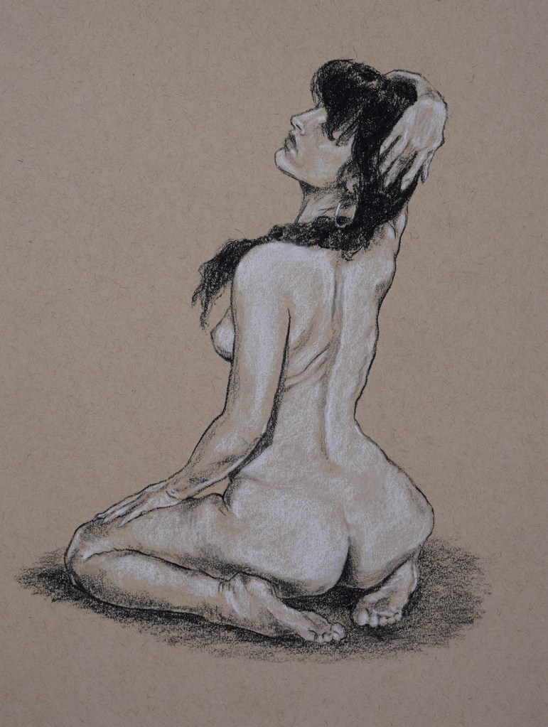 Tatiana Seated II Life drawing “Tatiana Seated II”, 2026, charcoal and chalk pencils on toned tan paper, 9″ x 12″ Drawn from a pose reference video from Gesture Drawing Online of the exceptional London-based model Tatiana. Share this: Share on X (Opens in new window) X Share on Facebook (Opens in new window) Facebook Like Loading... Related
