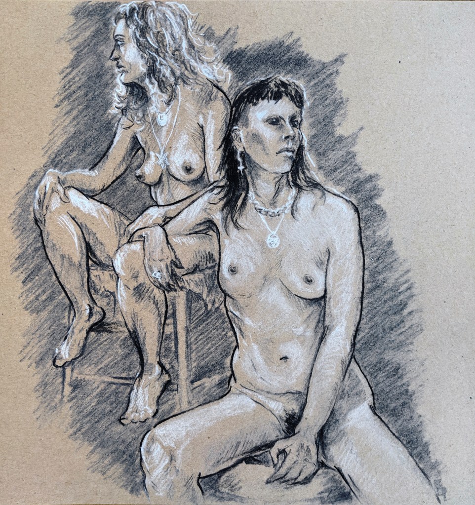 Drawn from life at The Moon and Nude Clapham, March 2019.