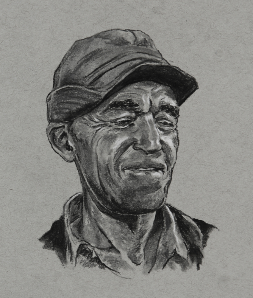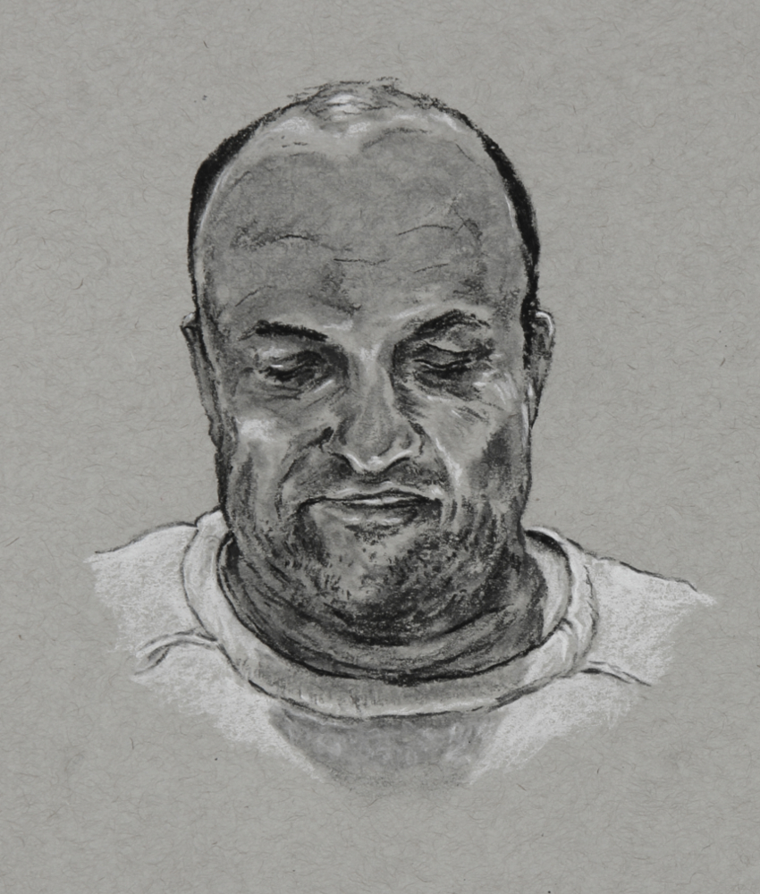 “A Pillar of Salt”, 2021, white charcoal pencil on black paper, 9″ x 12″ sketch